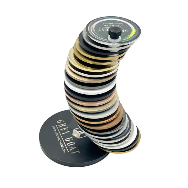 Chez Grey Goat Hardware (GGH), nous sommes ravis de vous proposer notre tour aux finitions colorées. Elle est composée de nos finitions pour Douche, rampe et quincaillerie architecturale/commerciale sélectionnée Conçu pour aider vos clients, designers, architectes et entrepreneurs à prendre des décisions éclairées pour leurs projets, notre palette de couleurs vous permet d'explorer une variété de finitions et de trouver l'harmonie parfaite pour chaque projet ou installation.