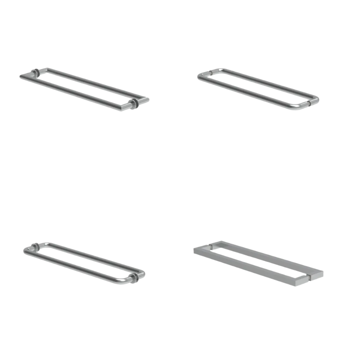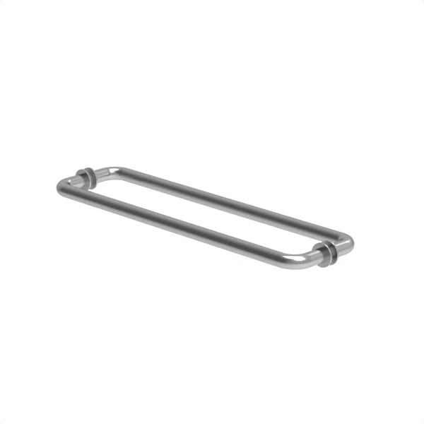 This back-to-back tubular towel bar offers a sleek, washer-free mounting solution for frameless glass doors, ensuring a balanced grip and modern look.